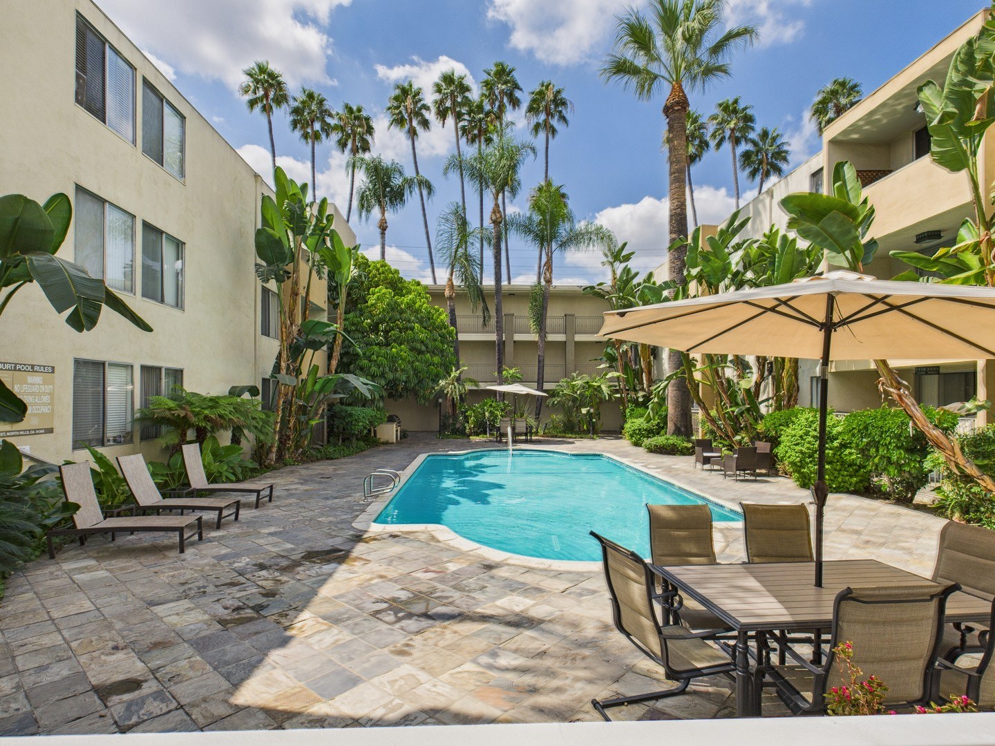 Welcome to Balboa Court in Northridge, California. From quiet, tree-lined streets to an awesome playground, we offer an old-fashioned community environment with all the modern conveniences you're looking for. Stay fit and healthy with our great fitness center to help you keep up with your goals. Cool down in one of our two swimming pools and get some peace and quiet in our sauna. Entertain your friends at an impromptu gathering in the clubhouse or enjoy some BBQ cooking in our picnic area. Our convenient location balances a peaceful environment with close proximity to major freeways such as the 405, shops like Northridge Fashion Center, and colleges such as CSUN. Call for your appointment today! Open house Daily 10am to 5pm